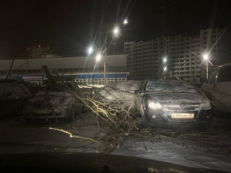Фотографии упавших деревьев, сорванных крыш и сломанных дорожных знаков начали постить жители Череповца еще днем в воскресенье. Хотя всю мощь стихия набрала ближе к вечеру.