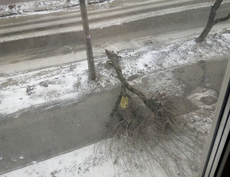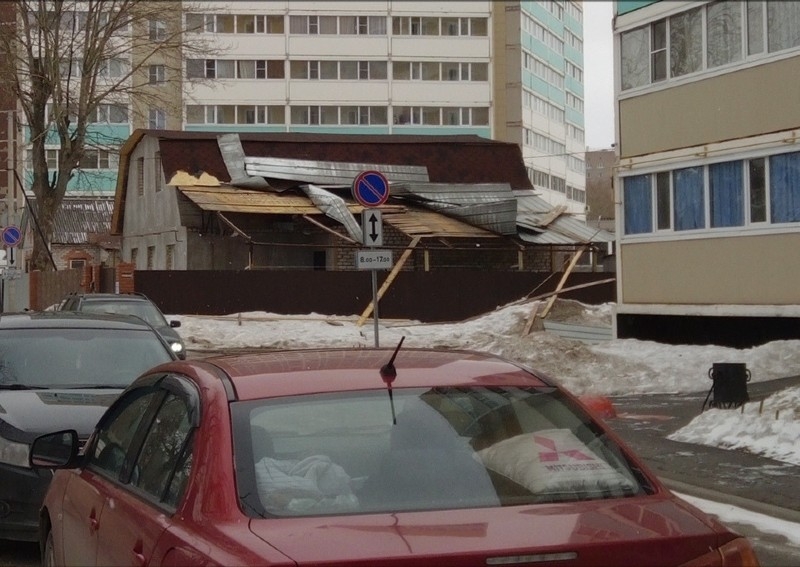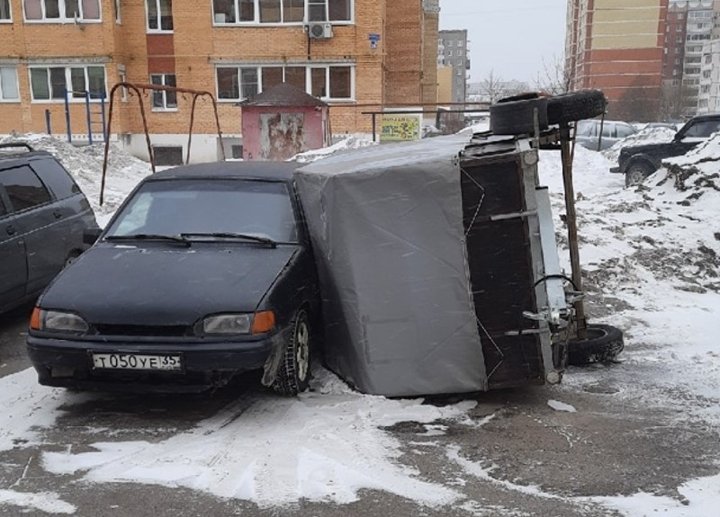 В некоторых районах города ветер повалил деревья. Часть из них падали на припаркованные машины. Ураганный ветер переворачивал прицепы, ломал металлические дорожные знаки. А у дома по улице Городецкой сильный порыв сорвал часть кровли.