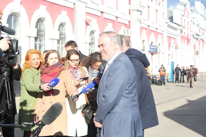 «Очень рады быть в Вологде – замечательном русском городе. Сегодня поговорили о выдающихся сыновьях Вологодской земли. Мне очень импонирует идея что-то сделать для увековечения памяти Валерия Гаврилина. Я думаю, у нас есть чем порадовать его земляков, и, возможно, что его 80-летие мы совместными усилиями проведем и здесь, и в Петербурге», — сказал Валерий Гергиев во время встречи с журналистами на вокзале Вологды.