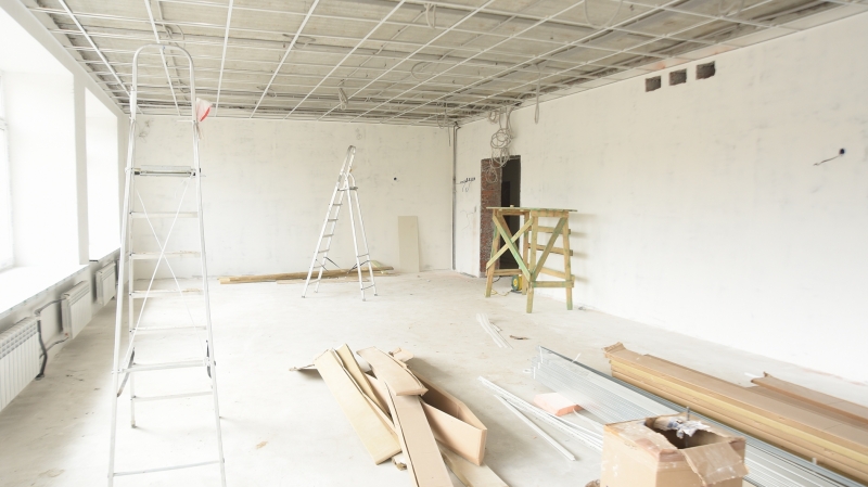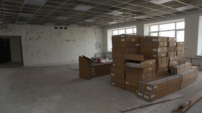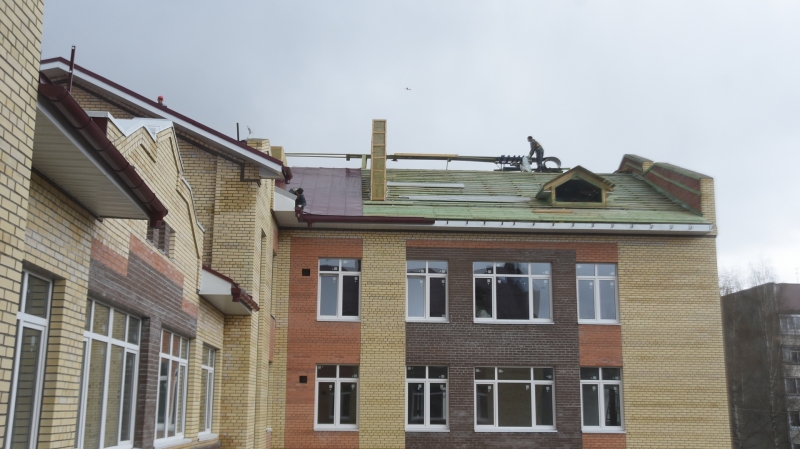 В настоящее время заканчиваются кровельные работы, черновая отделка. На следующей неделе рабочие приступят к покраске стен и укладке линолеума.