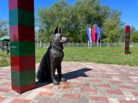 Бронзовая скульптура немецкой овчарки установлена в парке Победы.