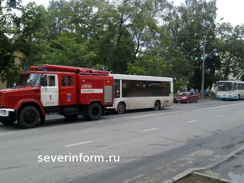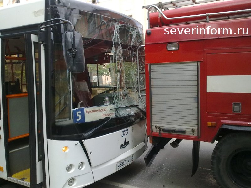 Автобус и пожарная машина столкнулись на улице Герцена в Вологде