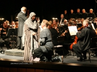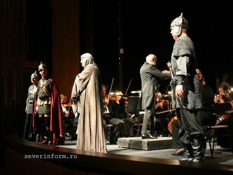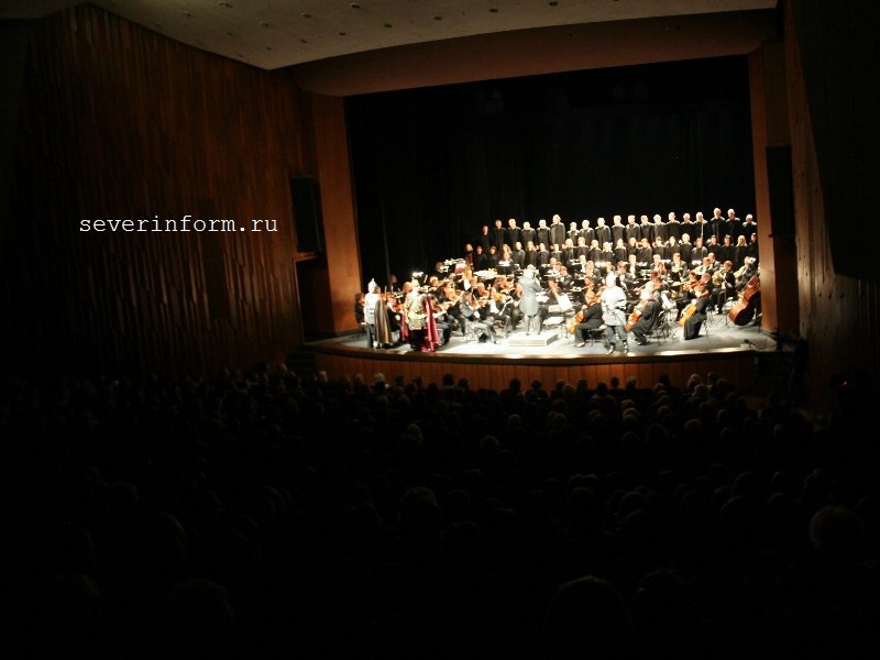 Настоящую оперу такого высокого качества зрители областной столицы слышат в своем городе, пожалуй, впервые. Поэтому в зале был полный аншлаг. И это даже несмотря на то, что никакого зрелищного действия здесь не было. Из-за отсутствия в городе огромной сцены с оркестровой ямой, характерной для больших академических театров, практически все сценическое пространство занимал симфонический оркестр и хор, который находился на заднем плане.