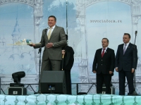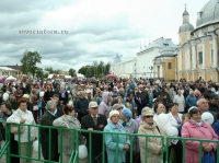В торжественной обстановке он вручил главе города макет резиденции, которая скоро будет установлена в парке Ветеранов. А после вместе с Епископом Игнатием и представителями власти региона прогулялся по площади, где развернулось основное празднование Дня города.