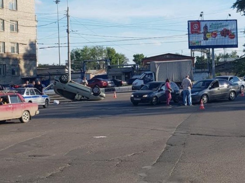 ДТП произошло неподалеку от «горбатого» моста напротив Почтампта. Как пишет очевидцы, скорее всего колесо машины попало в колею, или наехало на препятствие, после чего иномарку круто развернуло.