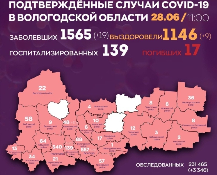 Актуальная информация на сегодня, 28 июня, размещена сайте Правительства Вологодской области.