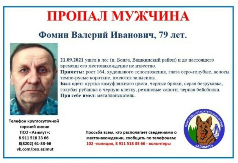 Сейчас участники ПСО «Азимут» планируют возобновить поиски. Выезд в Вашкинский район намечен на 30 июня и будет продолжаться 3 дня. Добровольцы просят помочь топливом. Реквизиты опубликованы тут, сообщает ИА «СеверИнформ».
