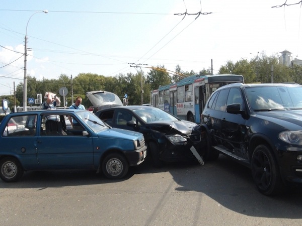 "Водитель "BMW" завершал маневр, когда в него врезались "Seat Ibiza" и "Ока". В результате ДТП травмы получил водитель второй иномарки и ребенок, который в момент аварии находился в салоне автомобиля в салоне", – цитирует сотрудников ДПС официальный портал Администрации города Вологды.