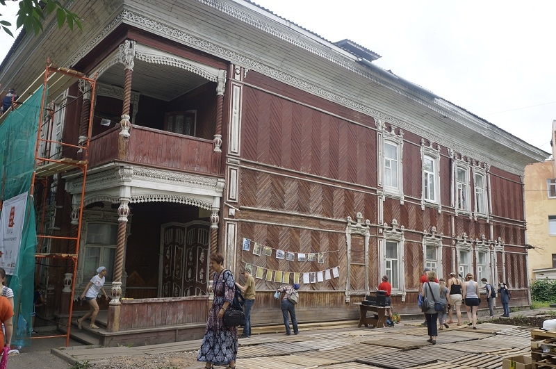 «В истории дома много пробелов, сейчас мы их восстанавливаем. По поводу других памятников пока мыслей не было, для начала нужно закончить это здание. Сегодня начнем ошкуривать, потом покрасим. Все стройматериалы получили от спонсоров, которые пожелали помочь фестивалю. Интерес есть, в том числе у бизнеса, ведь все мы живем в оном городе и знаем его проблемы, в том числе с деревянной застройкой», - рассказала экскурсовод Екатерина Хоботова.