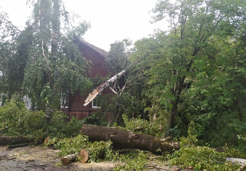 Фотографии уже появляются в соц.сетях. На улице Ухтомского от шквалистого ветра деревья повредили в одном доме крыльцо, в другом - проломили крышу. Но семьи без крова не останутся.