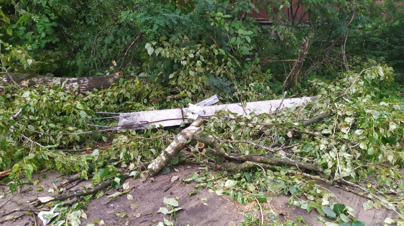 Еще о последствиях: в двух многоквартирных домах повреждена кровля, там требуется замена шифера. У некоторых жителей вышла из строя бытовая техника; есть сведения о том, что два автомобиля раздавлены упавшими деревьями.