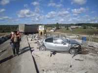 Возле переправы на запрещающий сигнал остановились грузовик «Renault» и легковушка. Сзади ехал «КАМАЗ», груженный лесом. Водитель не смог вовремя затормозить, столкнулся с легковым автомобилем и подмял его под большегруз. От удара «КАМАЗ» упал под мост, водитель погиб на месте, сообщает ИА «СеверИнформ» со ссылкой на пресс-службу УМВД России по Вологодской области. Также в результате столкновения фура выехала за пределы моста и повисла. Легковушку сильно смяло. Травмы получил ее водитель и пассажирка, а также дорожный рабочий. Также была информация о травмах у несовершеннолетних, но она не подтвердилась.