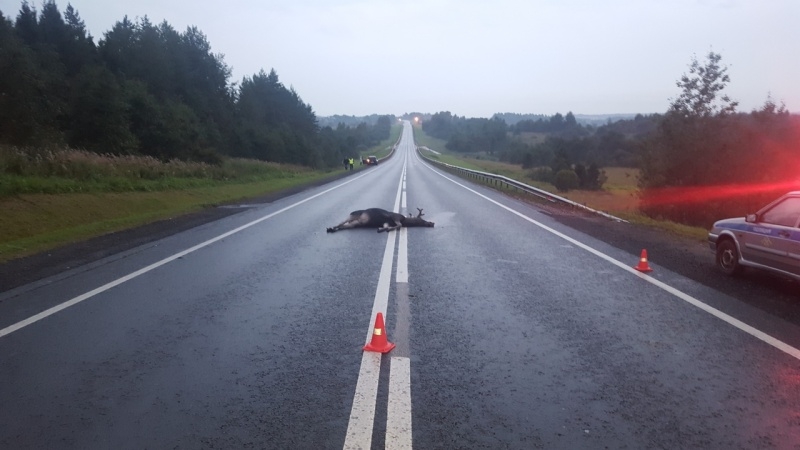 Под Вологдой иномарка насмерть задавила лося, люди не пострадали