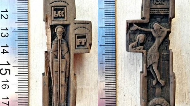 Резной крест, предположительно, датирован XV - XVI веками.