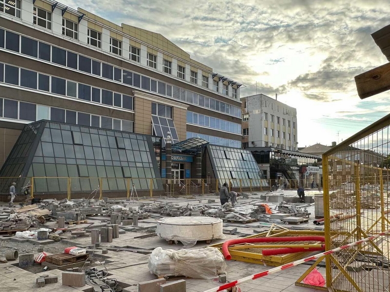 Работы начались в начале лета. Уже полностью смонтирована чаша, площадь перед ЦУМом покрыта плиткой, завезены скамейки и урны. На каждом элементе – юбилейная символика областной столицы.