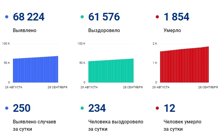 Это рекордный показатель. Ранее на протяжении трех дней подряд число умерших составляло 11 человек. После небольшого спада последовал новый рост. Общее количество жертв ковида в регионе выросло до 1854. Таковы официальные данные на утро 28 сентября.