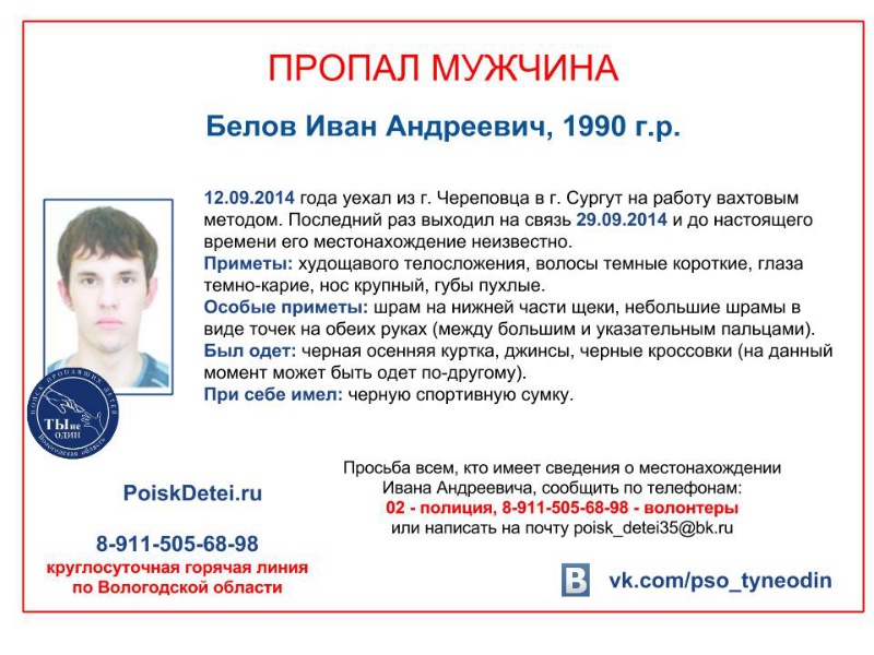 Через 2 недели он перестал звонить родным. Они полагают, что Иван стал жертвой махинаций со стороны работодателей. Возможно, он остался без средств к существованию и пытается добраться домой, сообщает ИА «СеверИнформ» со ссылкой на поисковой отряд «Ты не один».