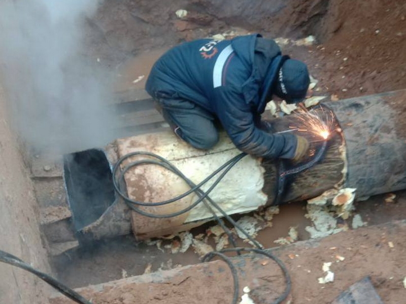 Ремонт ведет бригада ТГК-2. На месте с полуночи работает 9 человек, 4 единицы техники. Если потребуется помощь, то к ним присоединятся сотрудники Теплосетей.