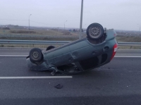 Водитель Лады не справился с управлением и въехал прямо в дорожное ограждение. От удара машина опрокинулась на крышу. Когда на место приехали сотрудники областного управления ГИБДД, водителя не оказалось. Сейчас идут его поиски. Скорее всего, мужчина был нетрезв или ехал на чужом автомобиле, сообщает ИА «СеверИнформ».