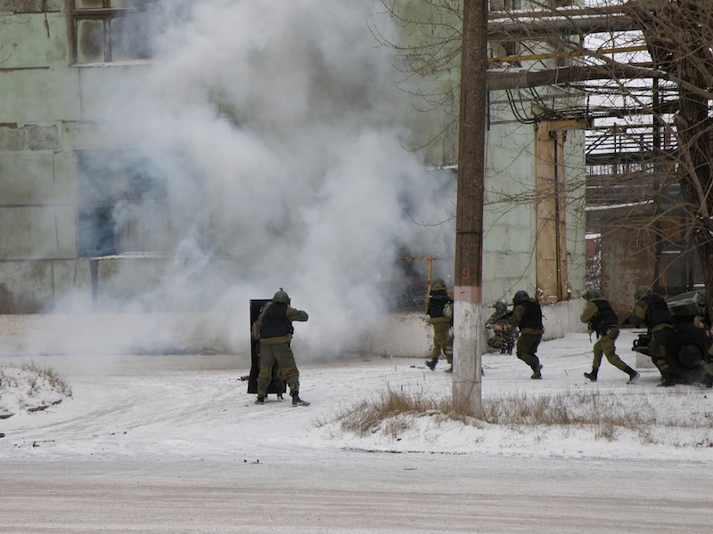 Масштабные учения по обезвреживанию террористов прошли в Череповце. Участие в них приняли сотрудники МВД, ФСБ, МЧС, УФСИН и других силовых ведомств. Об этом сообщает ИА «СеверИнформ — Новости Череповца» рассказали в Оперативном штабе Вологодской области. По легенде учений, рано утром вооруженная группа напала на склад взрывчатых веществ ОАО «Северсталь» и, убив охранников, похитила взрывчатые вещества. После этого террористы заложили в одном из помещений организации взрывчатку и захватили заложников в одном из зданий производства холодного проката. Нападавшие потребовали организовать им встречу с представителями СМИ, чтобы через журналистов передать свои условия Президенту страны. Чтобы подтвердить серьезность своих намерений, сообщники бандитов взорвали бомбу у КПП Военной академии, дислоцированной в Череповце. Позднее они выдвинули новые требования — вертолет и 5 миллионов долларов.