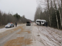«По предварительным данным, 29-летняя жительница деревни Хохлово за рулем «Geely» из-за погодных условий не справилась с управлением и выехала на встречку. Там в это время двигался микроавтобус, который перевозил работников одного из предприятий. Произошло касательное столкновение. Уходя от удара, водитель «Луидор» также выехал на встречную полосу, где врезался в «Волгу». В результате травмы получили 4 пассажира автобуса. У 28-летней девушки рваная рана подбородка, у 52-летней женщины порез шеи. 47-летняя женщина получила перелом носа и нижней челюсти. У 65-летнего мужчины перелом ребер. Автомобилистка, управлявшая иномаркой, с переломом бедра попала в больницу, - рассказали корреспонденту ИА «СеверИнформ» в пресс-службе УМВД России по Вологодской области.