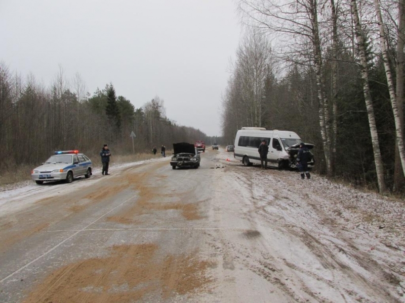 Микроавтобус и две легковушки столкнулись на трассе в Вологодской области