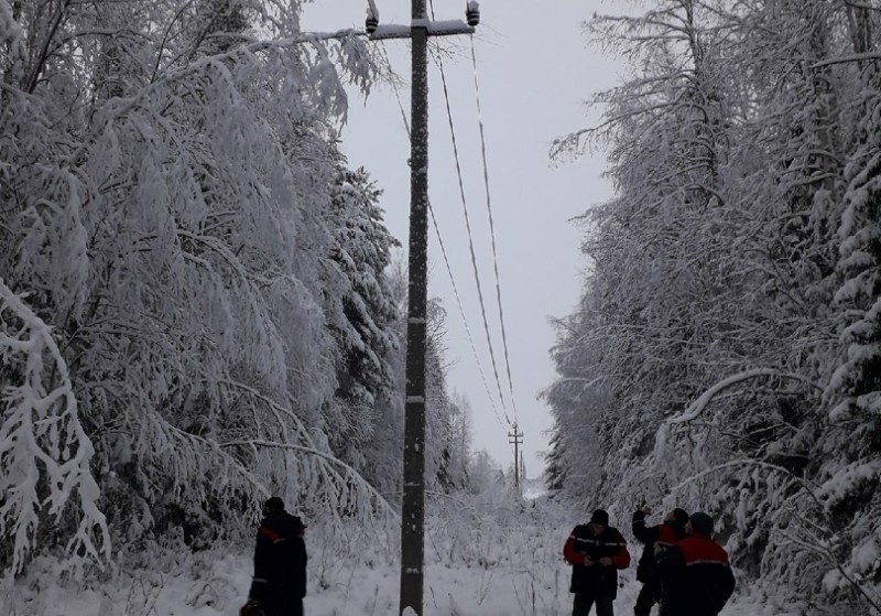 Из-за обильного снегопада в нескольких районах Вологодской области были проблемы с электричеством. Мокрый снег нависал на проводах и обрывал их. Вот такая ситуация сложилась и недалеко от деревни Андома гора Вытегорского района. Требовалось выехать в труднодоступную местность для ремонта сети.