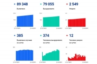 На территории Вологодской области за прошедшие сутки выявлено 385 новых случаев COVID-19, на сегодня насчитывается 89 348 подтвержденных диагноза. 374 человека выздоровели, число перенесших инфекцию равняется