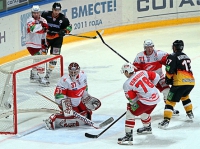 Череповецкая «Северсталь» в последнем матче уходящего года обыграла московский «Спартак» со счетом 3:2, сообщает ИА «СеверИнформ — Новости Череповца» со ссылкой на официальный сайт хоккейного клуба. К 25-ой минуте матча череповчане усилиями Александра Степанова и Геннадия Столярова создали преимущество в две шайбы. На 29-ой минуте встречи Денис Бодров сократил разрыв в счете, однако в середине последнего периода третью шайбу в ворота Ивана Касутина забросил Руслан Нурдинов. За умышленный сдвиг ворот хозяева площадки был наказаны штрафным броском, который реализовал Штефан Ружичка. Но поскольку к тому моменту до конца матча оставалось 7 секунд, поэтому исход встречи не вызвал опасений.
