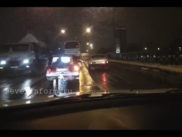 Сломавшаяся на мосту машина стала причиной пробки в центре Вологде (ВИДЕО)