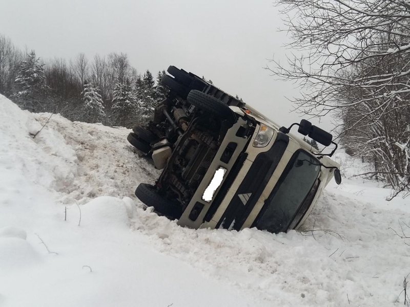 Грузовик слетел с трассы в кювет в Вологодской области