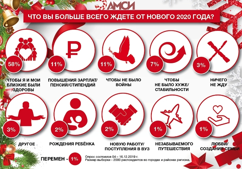 Результаты опроса вологжан на новогоднюю тему опубликовало Агентство мониторинга и социологических исследований.