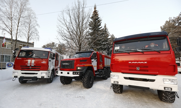 Вооружение регионального управления МЧС пополнилось пожарно-насосной станцией на базе КаМАЗа и двумя автоцистернами УРАЛ и КаМАЗ.