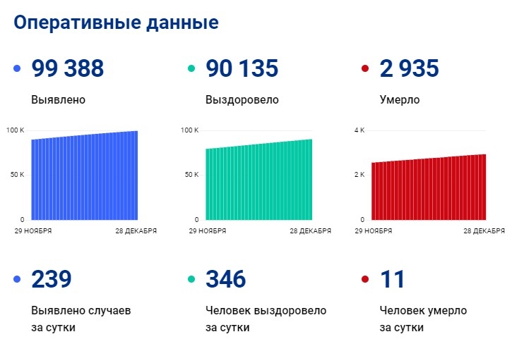 В Вологодской области вылечили более 90 тысяч пациентов с коронавирусом, за минувшие сутки с больничного выписал 346 человек. Скончались 11 заболевших, в общей сложности – 2935. Таковы официальные данные на утро 28 декабря.