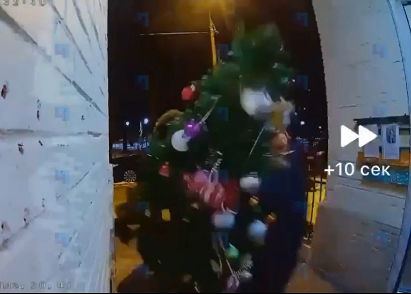 Елку со всеми украшениями вынесла группа из четырех злоумышленников. Их лица прекрасно видны на записи камеры. Жители дома удивились такому энтузиазму ребят, но писать заявление в полицию пока не спешат, сообщает ИА «СеверИнформ».