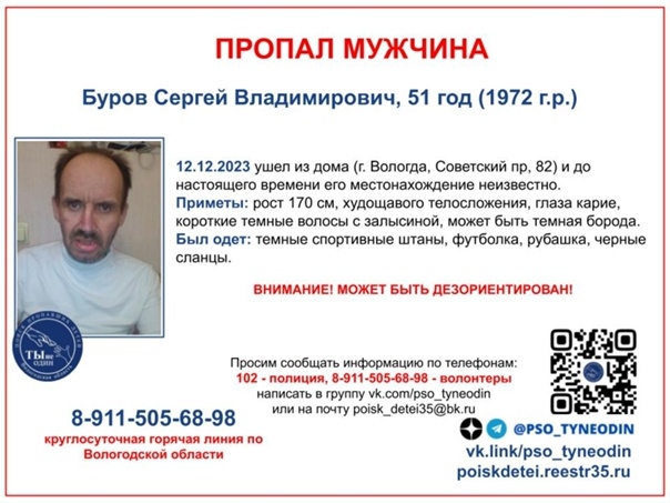 Всем, кто может помочь в поисках, просьба позвонить по указанным номерам, сообщает ИА "СеверИнформ".