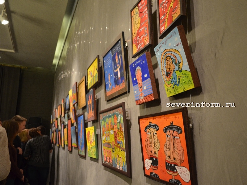 Выставка картин вологжанина Евгения Родионова открылась в вологодском Центре культуры «Красный угол». Свои произведения художник-повествователь — так он себя называет — объединил под названием «Пейте-пейте». Помимо картин, на торжественном открытии вологжане и гости города могли увидеть выступление солиста группы «Радиопомехи» Сергея Рудакова. Всего мероприятие посетили несколько десятков человек.