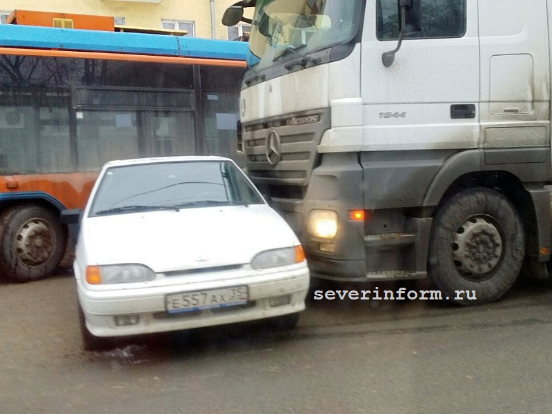 Грузовик протаранил легковушку в Вологде