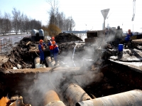 37 домов в центральной части города Вологды остались без горячей и холодной воды, в связи с крупной аварией на перекрестке ул. Ленинградская – Благовещенская. Причиной стал прорыв, который ликвидируют специалисты «Вологдагорводоканала».