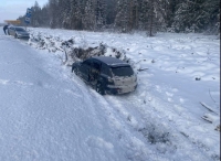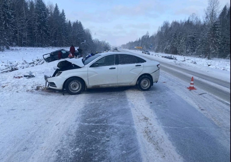 Машины разлетелись по кюветам после столкновения на трассе в Череповец