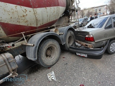 Бетономешалка протащила несколько метров легковушку по проезжей части