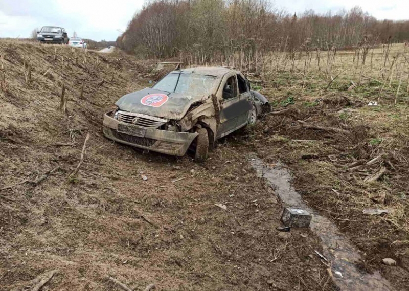 Машина съехала в кювет. ДТП случилось около 10 часов 28 апреля на дороге «Череповец – Белозерск – Липин Бор».