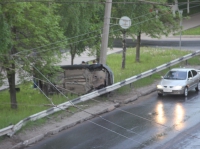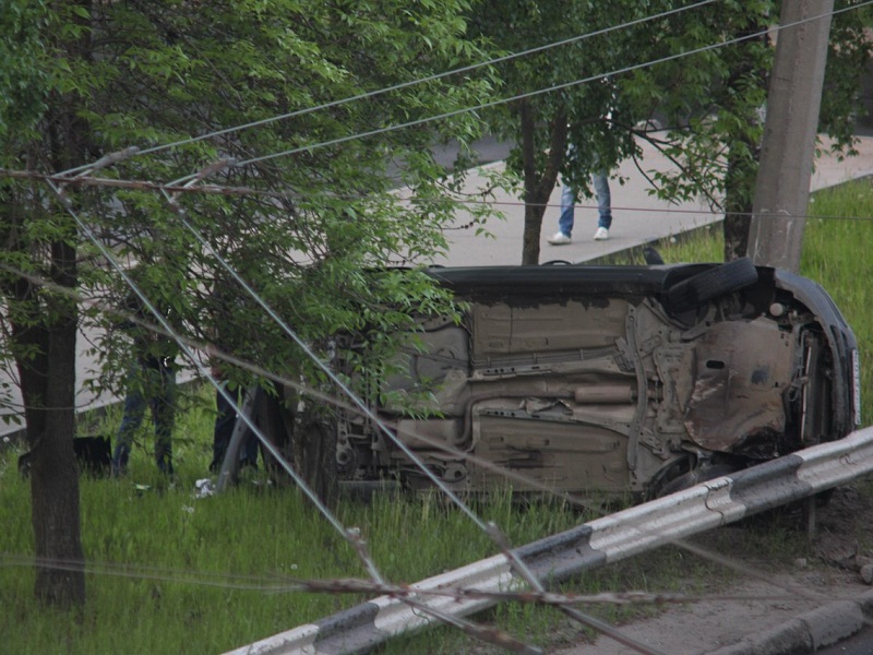 По предварительным данным, автомобиль задел световую опору, к которой крепятся троллейбусные провода. Станет ли это причиной нарушения графика движения троллейбусов, еще предстоит выяснить.