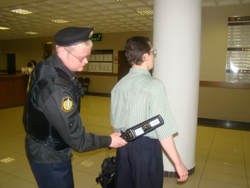 Приставы обеспечивают и безопасность в суде. «В числе запрещенных предметов — газовые баллоны, травматические пистолеты, ножи разные, ножницы. Ежедневно до 6-7 запрещенных предметов приносят, а мы изымаем», - рассказал старший группы судебных приставов Вологодского областного суда Ярослав Заболоцкий.