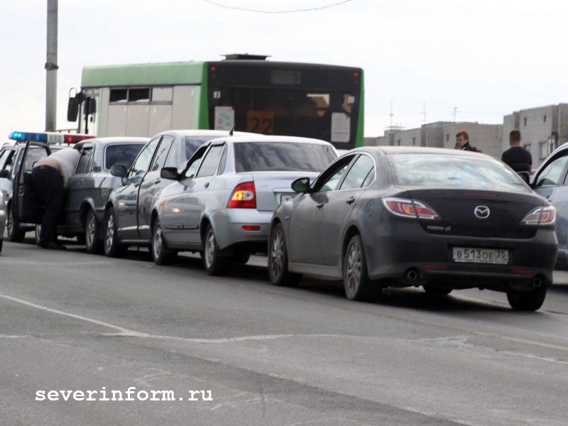 Сразу четыре автомобиля столкнулись на Ленинградском мосту в Вологде