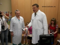 В завершении своего визита глава региона пообщался с юными пациентами травматологического отделения, подарил больнице большой плазменный телевизор и жесткий диск с детскими фильмами, сообщает ИА "СеверИнформ".