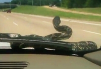 В Череповце змея выползла из движущегося автомобиля на Октябрьском мосту. По информации официального сайта города металлургов, курьезный инцидент произошел вчера около 6 часов вечера. «Гостью из леса» увидела на своем капоте автоледи, которая сидела за рулем автомобиля, ехавшего по мосту. Женщина остановила машину, но зверюга в тот же момент заползла обратно.