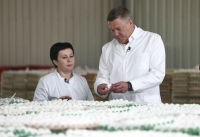 «Вологодский Агрокомплекс» на сегодняшний день является лидером по производству куриного яйца в регионе. Мощности предприятия позволяют производить до 350 миллиона штук яиц в год. Губернатор области прошел по территории, оценил технико-логистический центр, в котором идет сортировка, упаковка и реализация готовой продукции. Стоит отметить, что в этом году цеха были модернизированы, в них проведен капитальный ремонт. Это, в том числе, способствовало тому, что сейчас фабрика может производить 120 тысяч штук яиц в час.