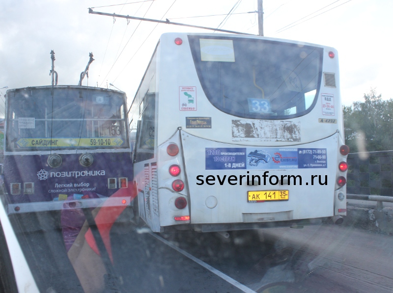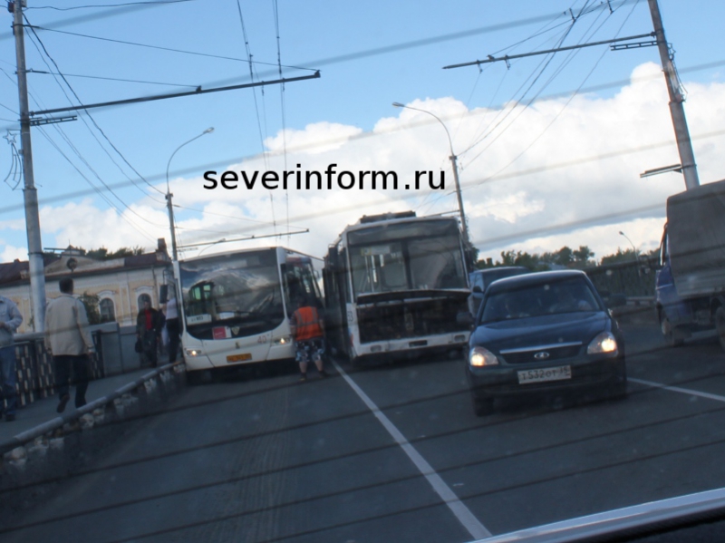 Троллейбус и автобус столкнулись на мосту в Вологде