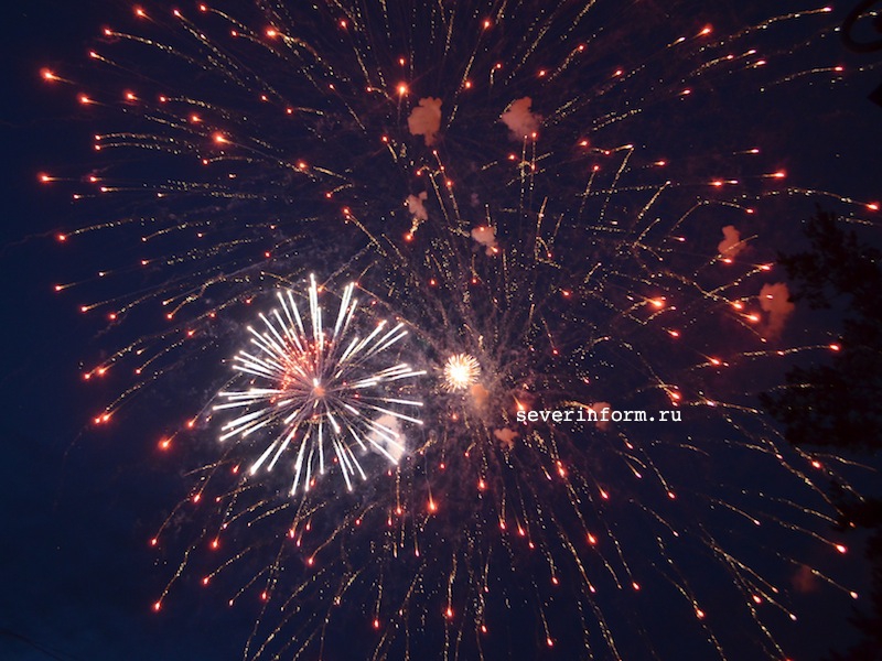 Отметим, что в этом году салют был необычным для нашего города: организаторы праздника использовали не любительские заряды, которые вылетают вверх только на 100 метров, а профессиональные, выстреливающие от 250 до 500 метров в высоту, сообщает ИА «СеверИнформ». Несмотря на то, что разноцветные вспышки были видны издалека, тысячи человек пришли на площадь, чтобы посмотреть на фейерверк вблизи. Салют длился около десяти минут, каждый раз радуя зрителей новым красочным рисунком на фоне ночного неба.